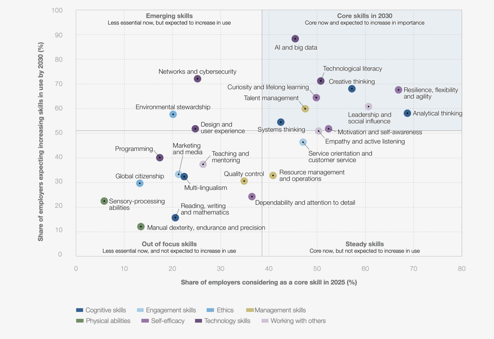 Maailma Majandusfoorumi 2025. aasta töökohtade tuleviku raporti kohaselt kaob või muutub 2030. aastaks ligi 40% oskustest, millele inimesed täna tuginevad.