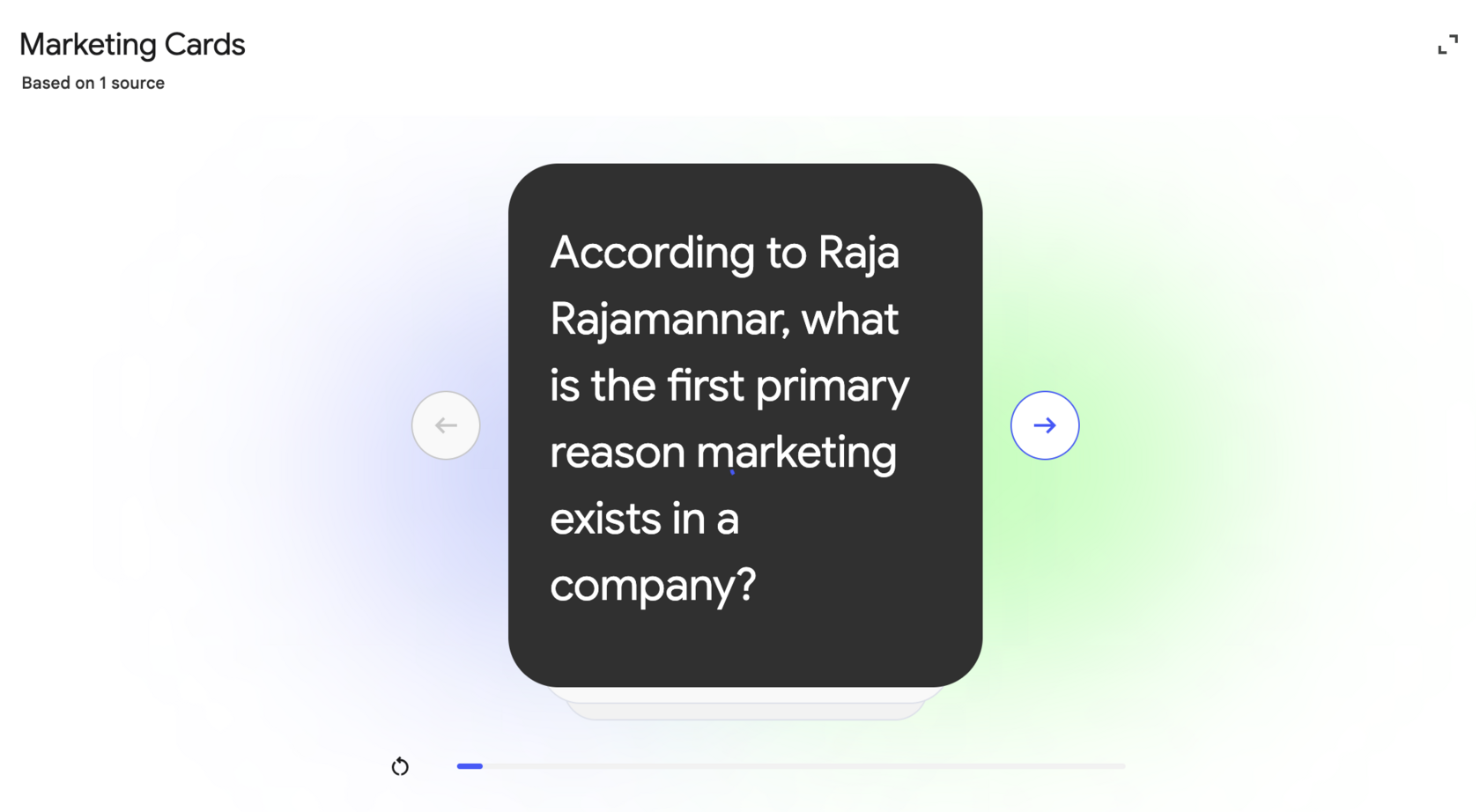 - Multiple outputs: Generate mind maps, audio overviews, video presentations, flashcards, and quizzes—all from your content.