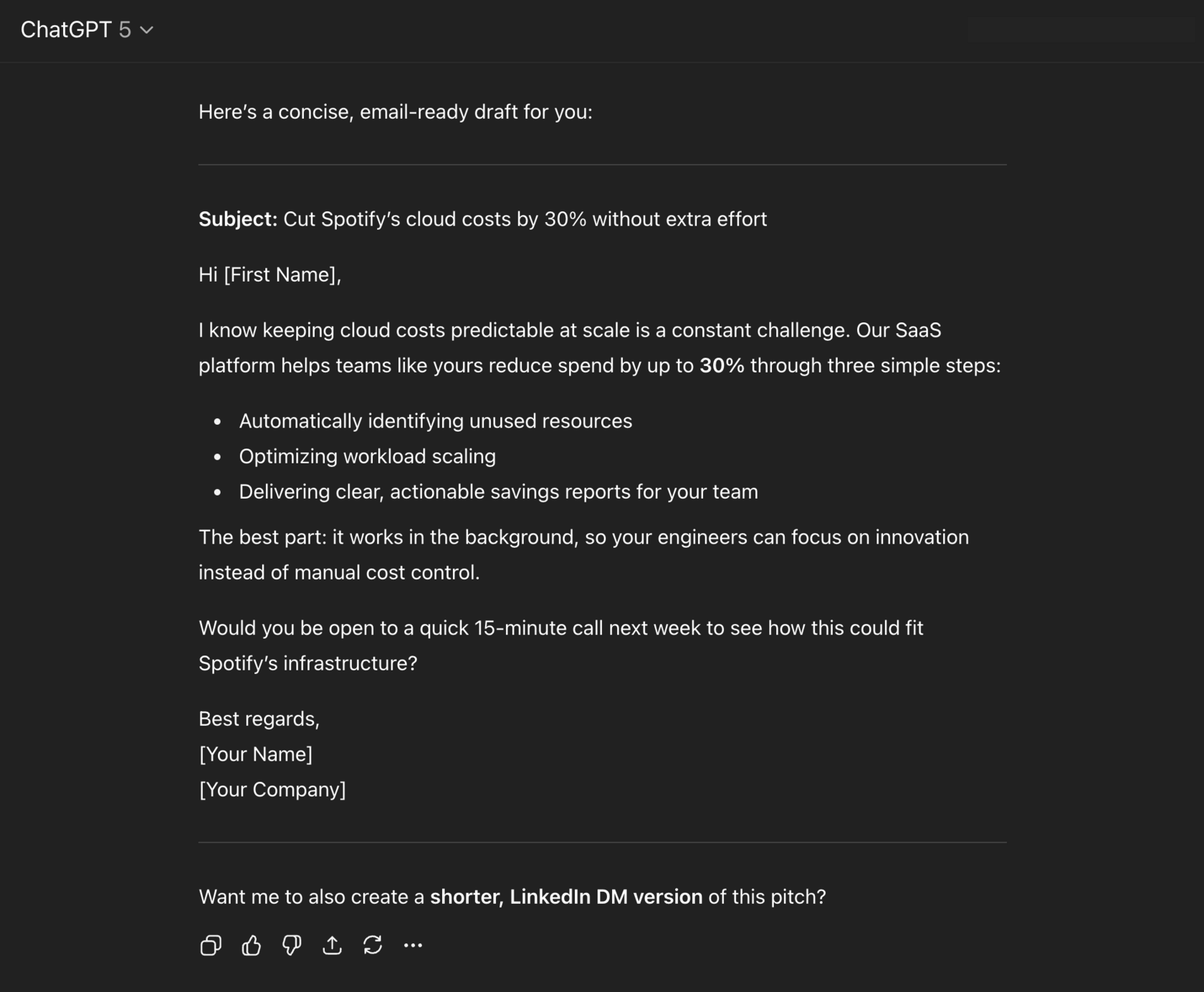 Write a short, compelling cold email to a Head of IT at Spotify introducing our SaaS platform that reduces cloud costs by 30%. Use the background below to customize it.